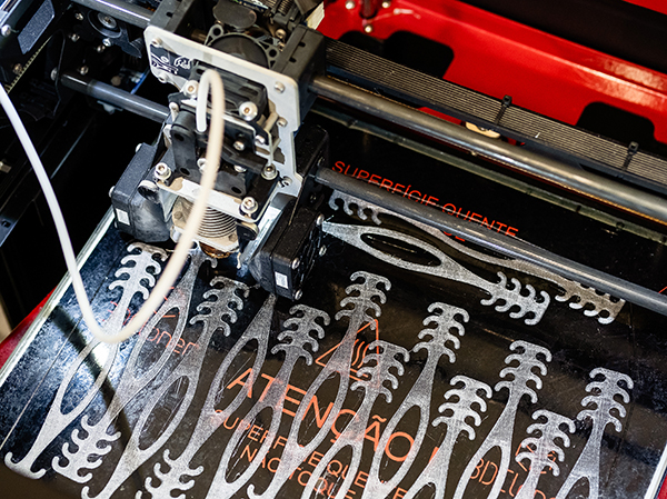 Outra peça produzida na impressora 3D e distribuída é a chave de segurança